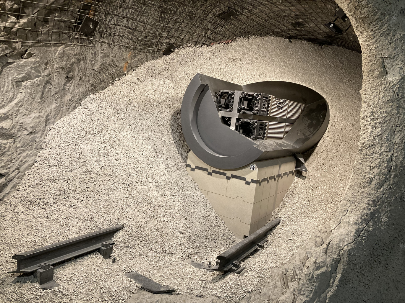 For the delegation of the Advisory Board, the tour began with a trip into the earth's interior. Wearing protective suits, the members explored the mine, which is up to 1200 m deep. Temperatures in the mine climb up to 30 degrees. The mine measures about 30 km in length and extends over several levels (the levels of a mine can be described as individual floors). Currently, levels 1, 2 and 3 of the mine are being converted into a final repository. For this purpose, the workers are constructing the transport routes and emplacement fields for the finished conditioned waste packages. The filling tunnels through which the waste is brought into the mine are being excavated specifically for this purpose.